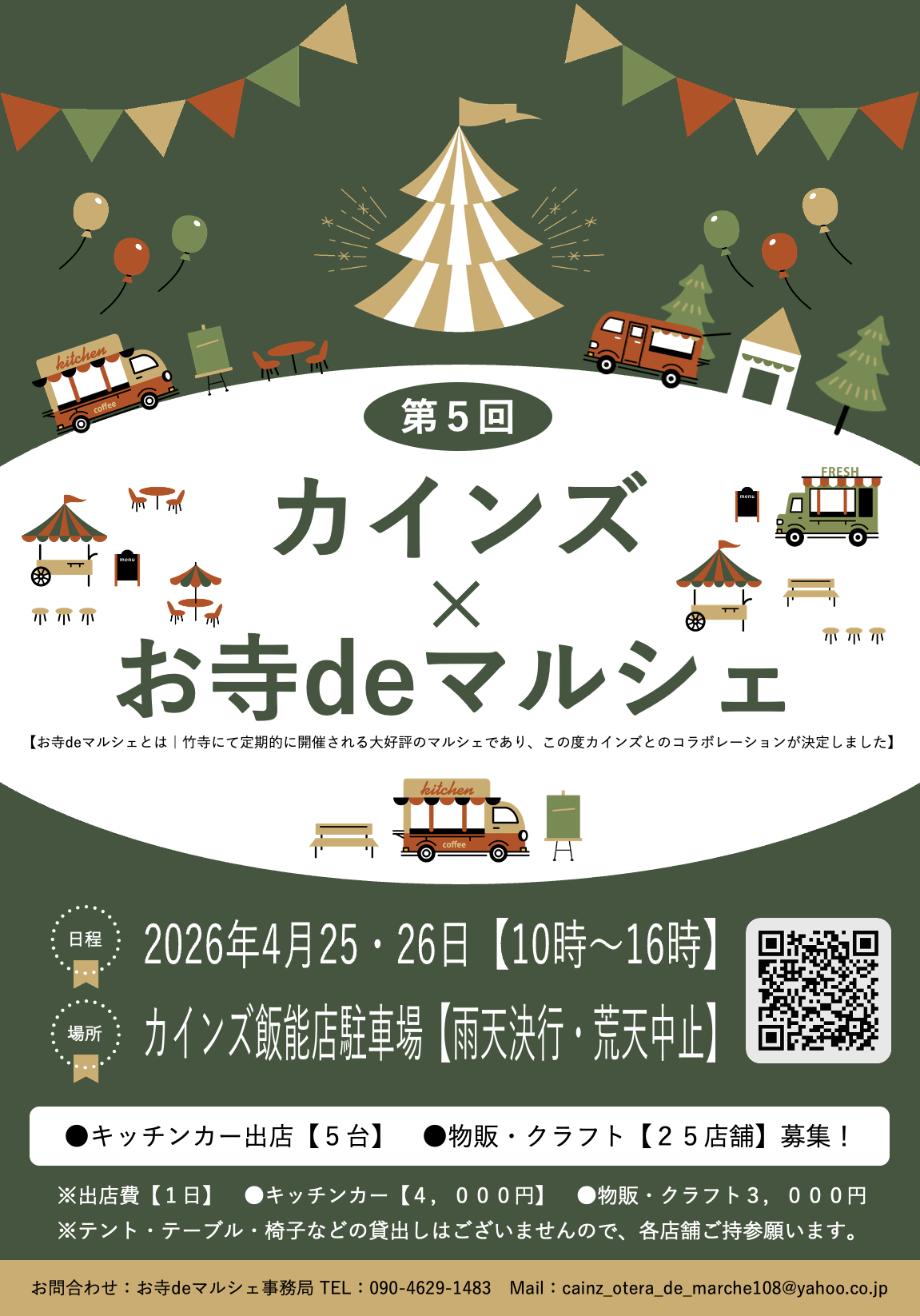 こちらは、カインズ飯能店×お寺deマルシェの専用お申し込みフォームになります。
